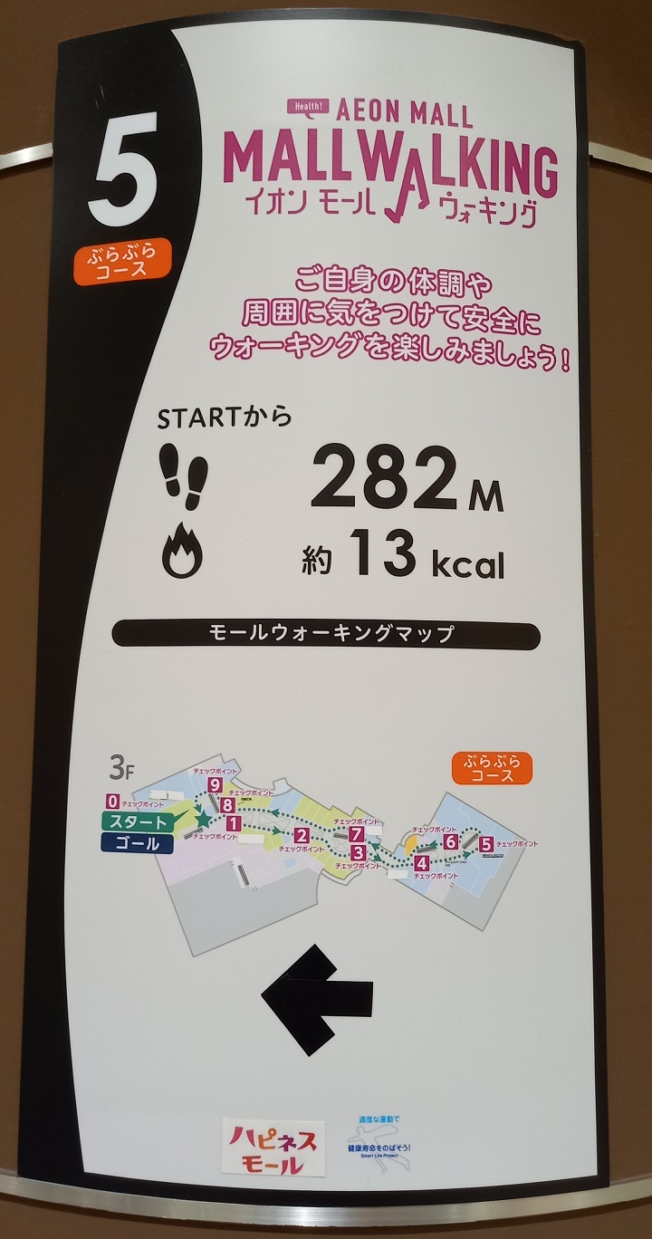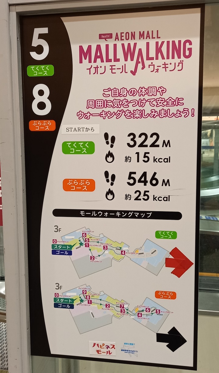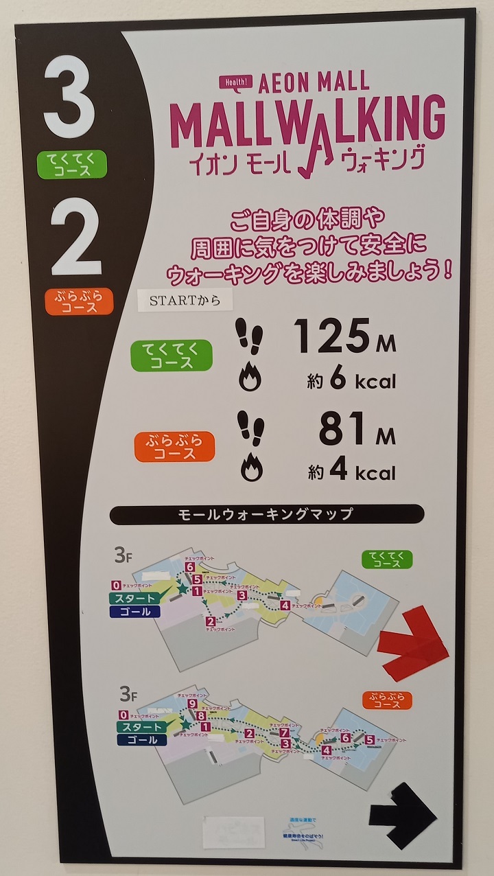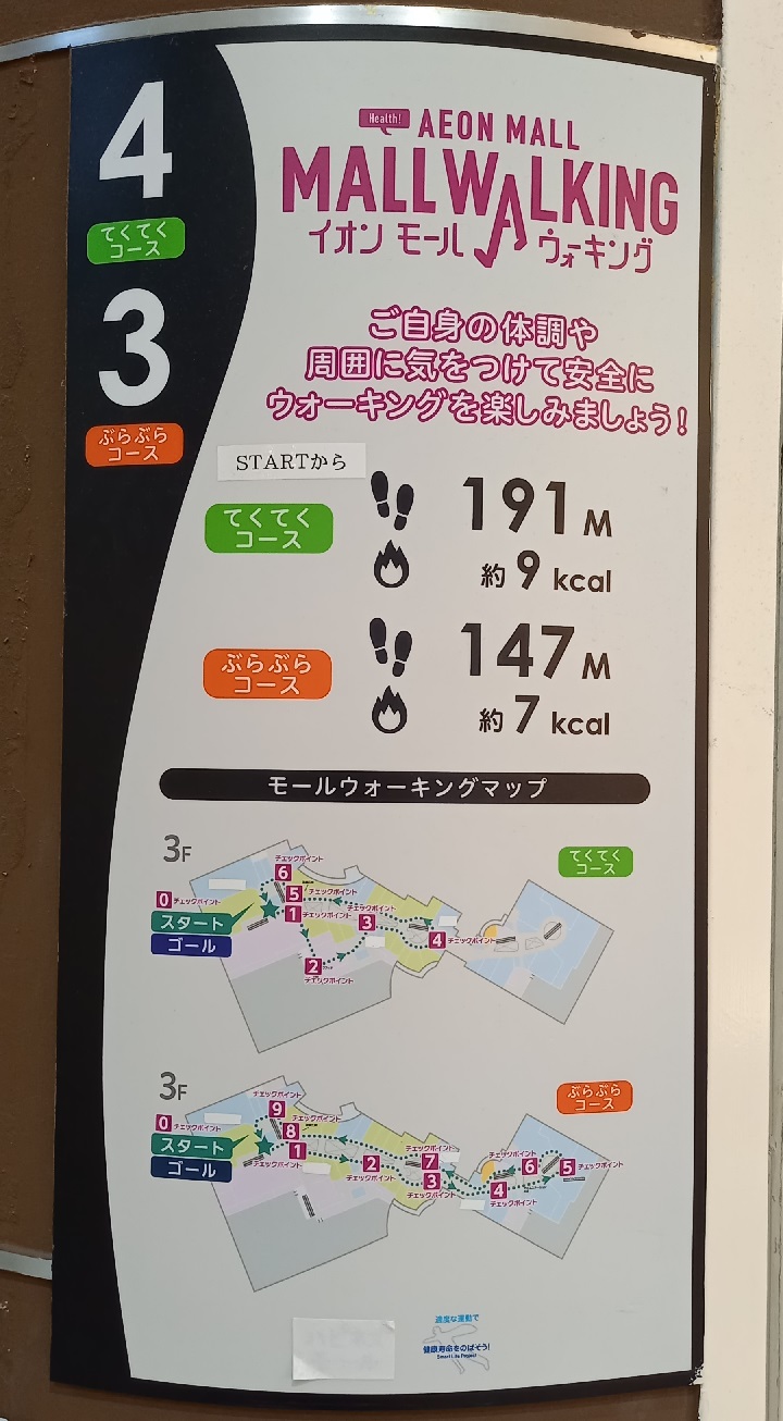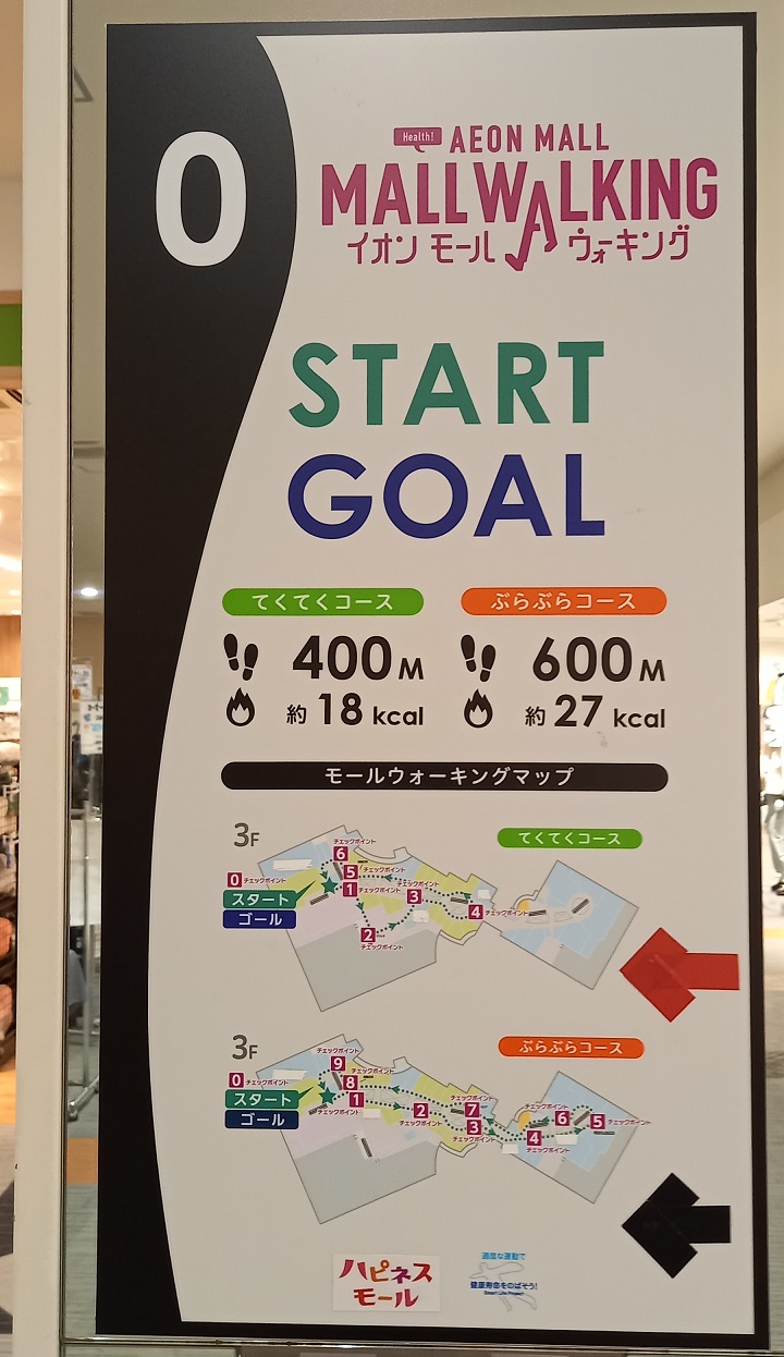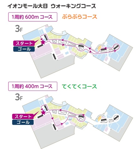 コースは3階のみ。スタートコースから渡り廊下を通り別棟まで回る600mコースと一棟内のみ周回する400mコースが設定されています。 https://www.aeon.jp/sc/dainichi/info/detail/info_251001.html |
